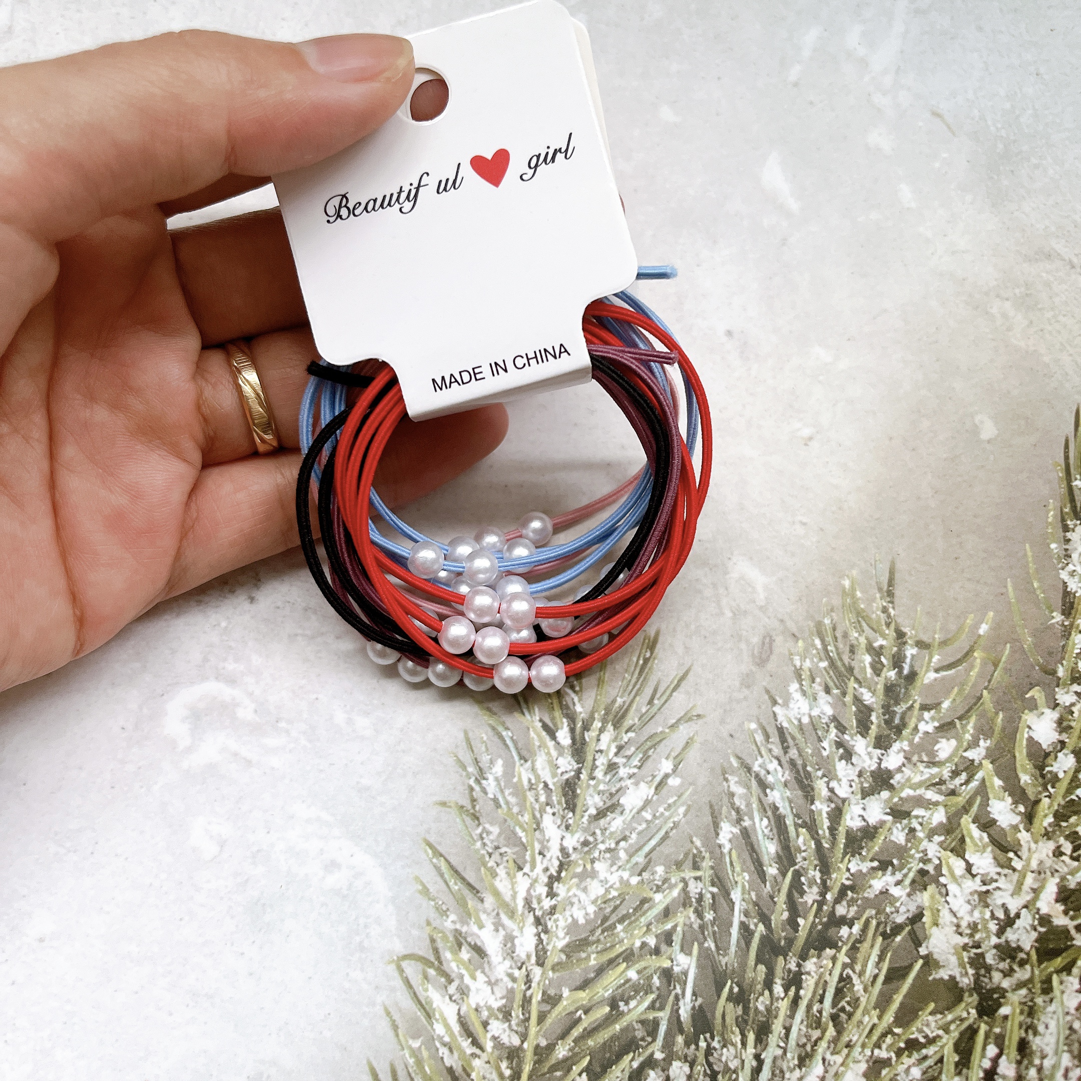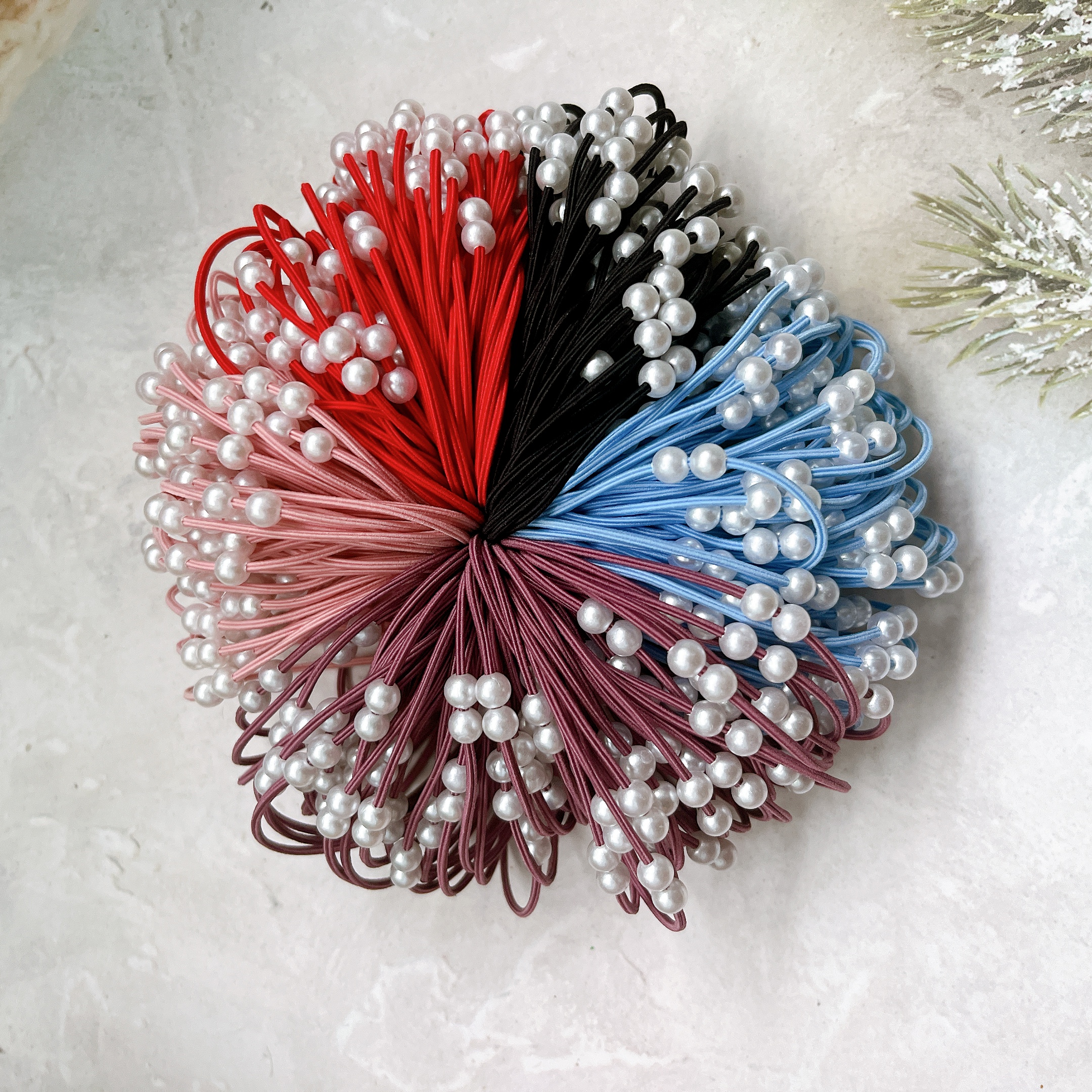 Dây buộc tóc 6 hạt châu (100 chiếc)